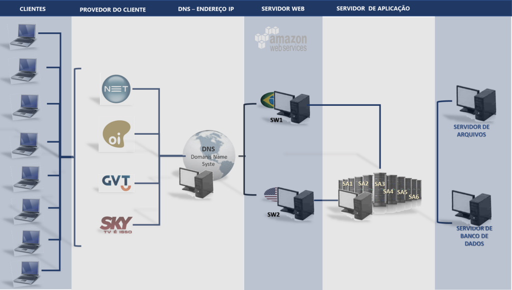 Diagrama simplificado da nossa infraestrutura na AWS (Amazon)